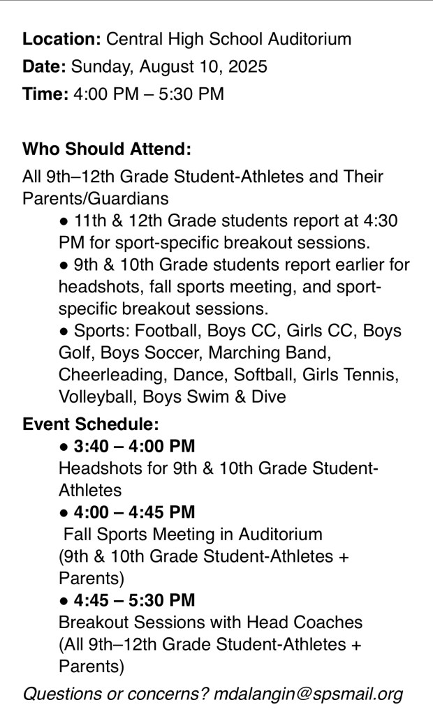 Central’s new AD, Mr. Dalangin, is hosting a Student-Athlete meeting next Sunday. See attached imagine for all the details.